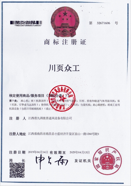 • 商標(biāo)注冊證(川頁眾工